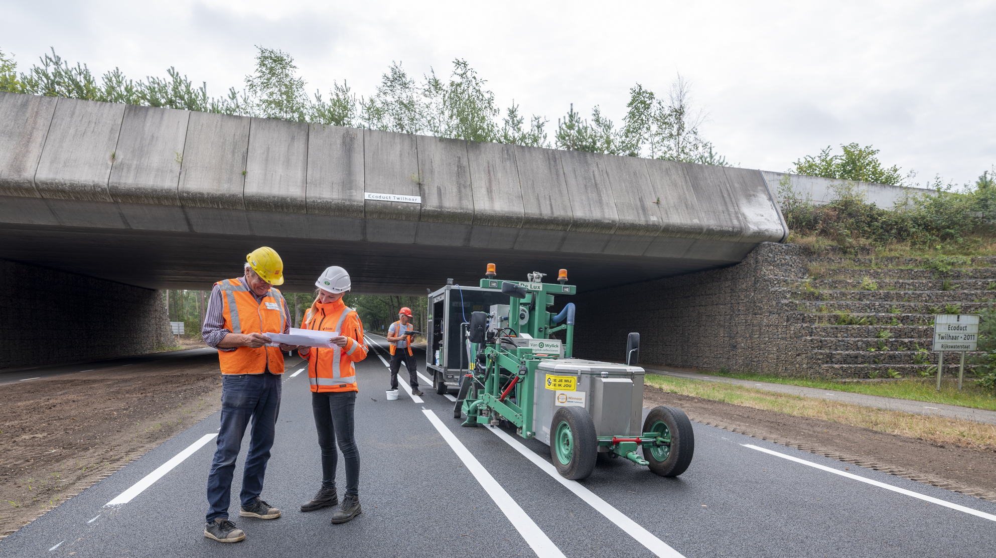 Reinig het wegdek grondig en zorg voor een droge, schone ondergrond. Verwijder alle vuil, olie en losse deeltjes.